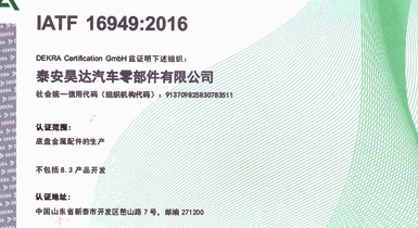 公司擁有IATF16949:2016國際標(biāo)準(zhǔn)質(zhì)量管理體系認(rèn)證,精良的設(shè)備、先進(jìn)的生產(chǎn)工藝及完善的質(zhì)量檢測(cè)保證了公司產(chǎn)品的可靠品質(zhì)...